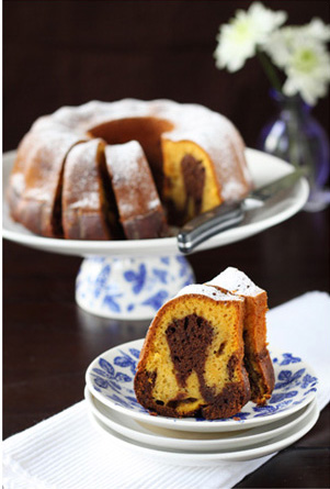 Vahusta munad suhkruga. Lisa kõrvitsapüree, õli ja vesi, sega ühtlaseks. Viimasena sega juurde omavahel segatud kuivained. Jaga tainas kaheks osaks. Sulata kuumaveevanni kohal šokolaad ja sega ühele tainaosale. Võta võiga määritud ja jahuga üleraputatud ümmargune keeksivorm. Vala pool kõrvitsatainast vormi, kata šokolaaditainaga, siis taas kõrvitsatainas ja kõige peale vala šokolaaditainas. Sega vormi kallatud...