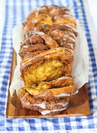 Lahusta pärm käesoojas piimas, lisa sulatatud või (käesooja temperatuurini jahutatud), toasoe kõrvitsapüree, sool ja suhkur. Sõtku vähehaaval juurde jahu kuni saad ühtlase taina, mis lööb käte ja kausi küljest lahti. Kata kauss rätikuga ja lase soojas kohas kerkida u. 1 tund. Täidise jaoks sulata või, sega kaneeli ja suhkruga. Sõtku tainas kergelt läbi...