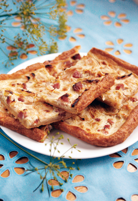 Haki võitükid peeneks ja näpi jahu (ja soola) sisse. Kui segu on sõmer, lisa külm piim ja sõtku kiirelt tainaks. Suru ühtlase kihina 24 cm-se koogivormi põhja ja servadele ning aseta 30 minutiks külmkappi ootele. Eelküpseta põhja (küpsetusubade abiga) 200-kraadises ahjus ca 12 minutit, kuniks see on õrnalt kuldpruun. Täidiseks poolita...