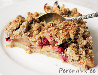 Puista kuivained kaussi, sega läbi ja lisa või. Hõõru või kuivainete hulka, kuni segu on natuke teraline. Lisa vähehaaval külma vett, just nii palju, et tainas muutuks ühtlaseks ja mitte rohkem. Rulli tainas palliks, vajuta lapikuks, mässi kilesse ja lase pool tundi külmikus seista. Koori ja puhasta õunad, tükelda 1...