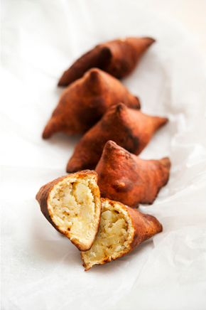 Sega kokku samosade taigen – sega jahud, lisa õli ja vähehaaval vett ja sõtku kuniks saad ühtlase taigna. Lisa vajadusel vett juurde. Kata taigen kilega ja jäta sooja kohta pooleks tunniks seisma. Vahepeal valmista samosade täidis. Purusta kartulid ja herned pudrunuia või kahvliga. Kuumuta panni paar spl õli ning kui...