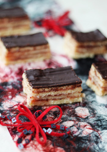 Pane ahi 180 kraadile soojenema. Purusta küpsised köögikombainis, sega suhkru ja võiga ning suru 22×30 cm suuruse koogivormi põhja; aseta külmkappi ootele. Sega täidise ained, vala segu koogipõhjale ja küpseta 180-kraadises ahjus 30-40 minutit. Kuniks täidis küpseb, valmista kate – sega ained kokku. Kalla see küpsenud koogitäidise peale, lisa ahjule pisut...