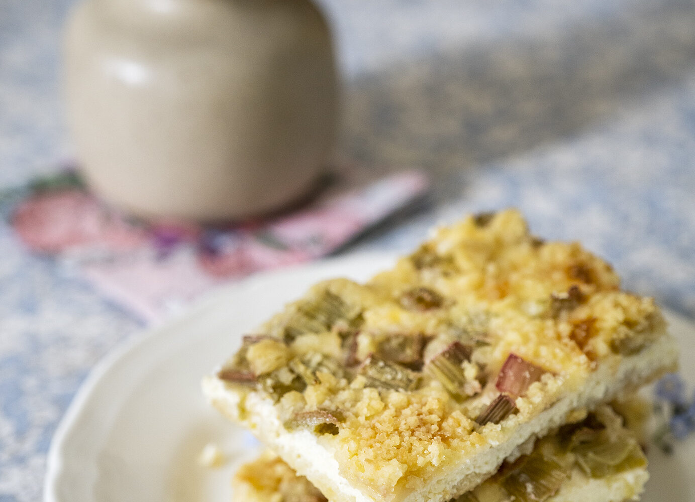 Klassikaline rabarberi-kohupiima purukook